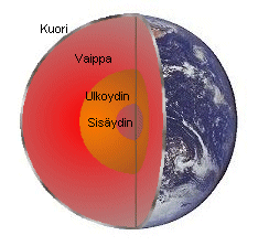 ulkoytimeen ja kiinteään sisäytimeen. Maapallon kiinteän kuorikerroksen